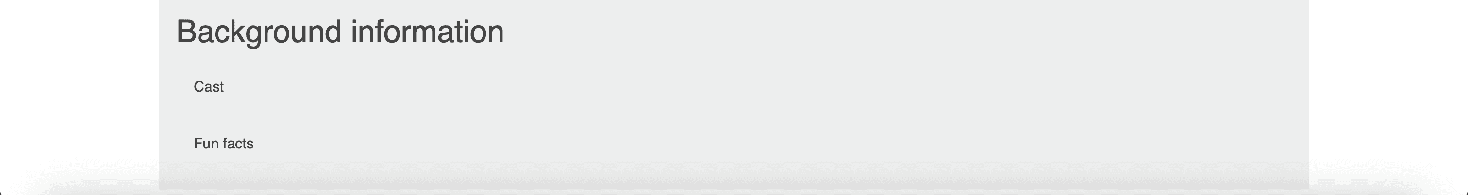 Background information is added, such as the movies' cast and random fun facts. The information is shown in an accordion style where users click on the options given and a dropdown unfolds with information regarding their option.