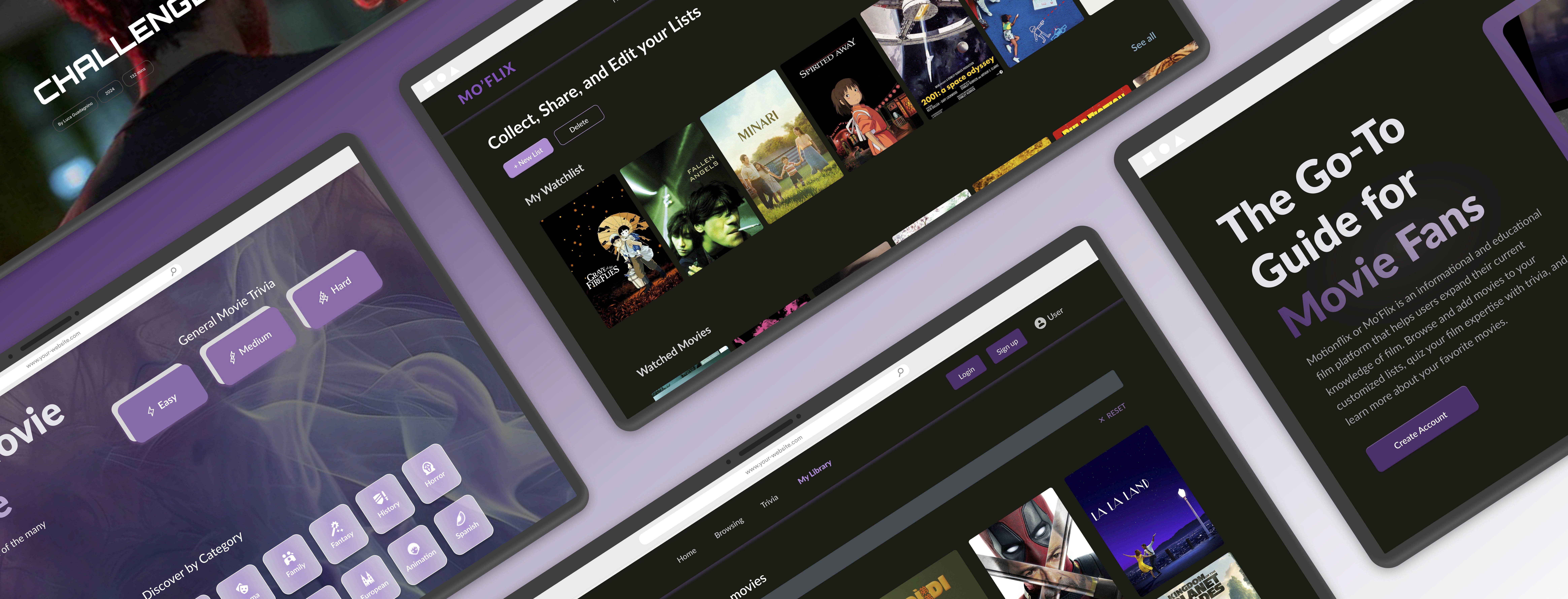 Motionflix or Mo’Flix is an informational and educational film platform that helps users expand their current knowledge of film. Browse and add movies to your customized lists, quiz your film expertise with trivia, and learn more about your favorite movies.